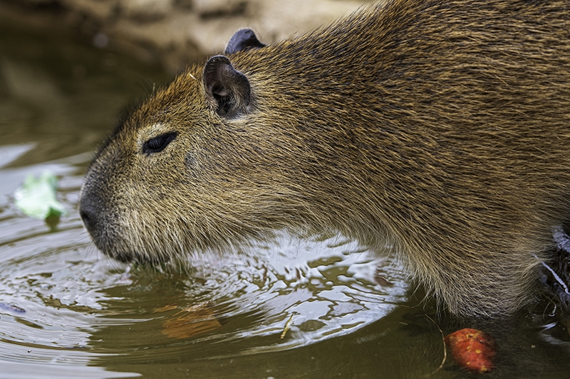 The capybara's swam underwater and then took the leaf from my hand!