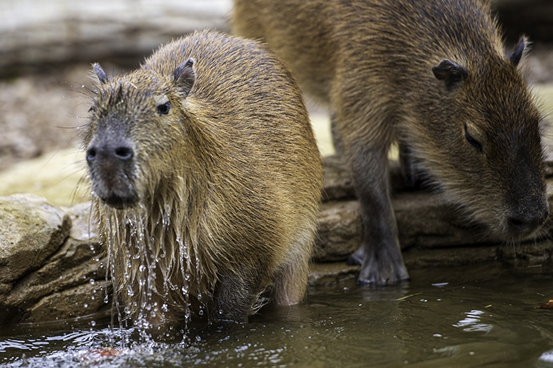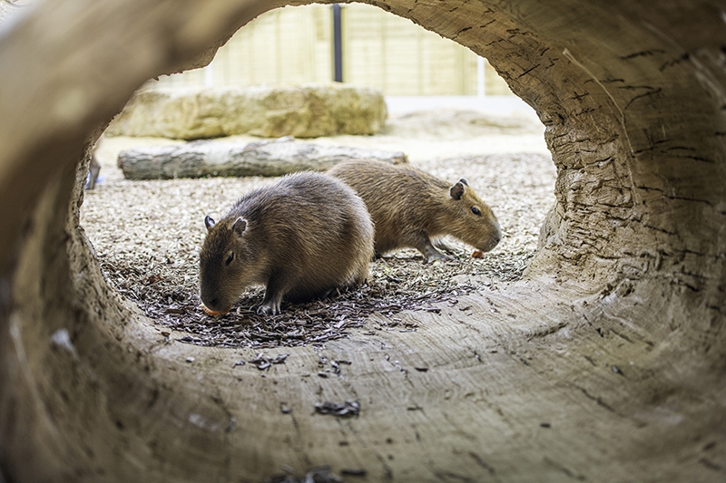 Our resident capybara sisters are a properly social bunch and usually come trotting over the moment someone new pops by.