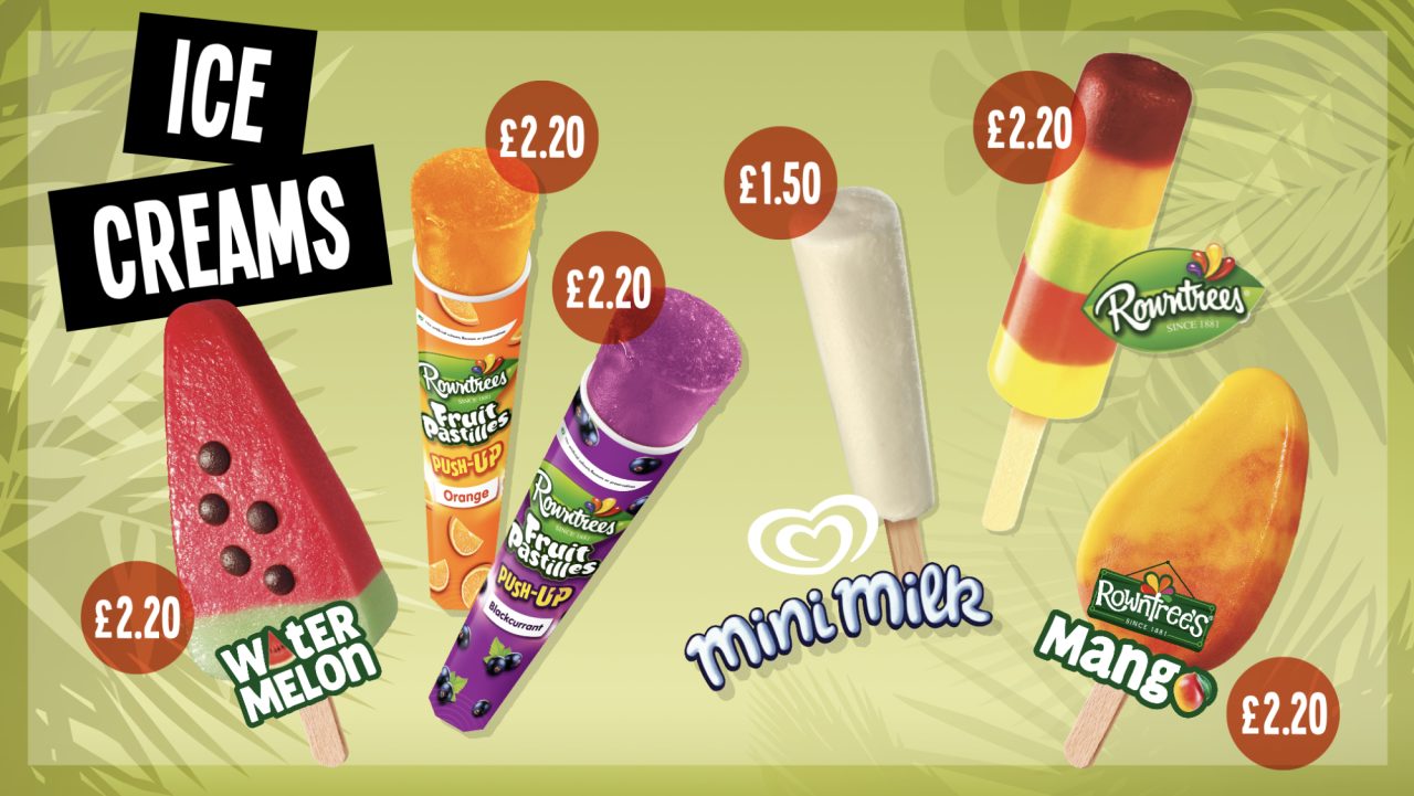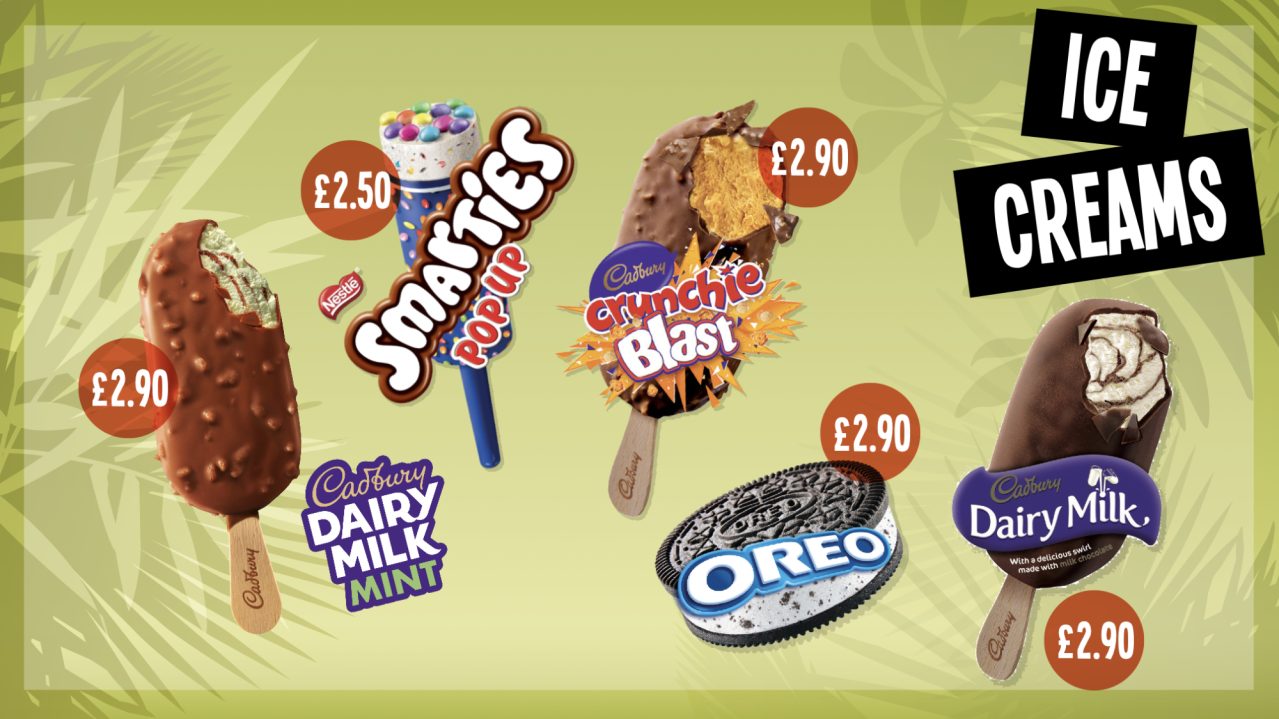 The Jumping Pillow Kiosk sell drinks, ice creams and donuts.