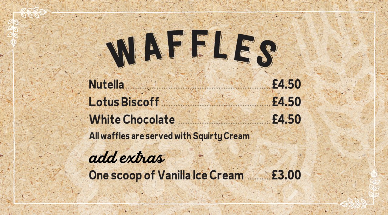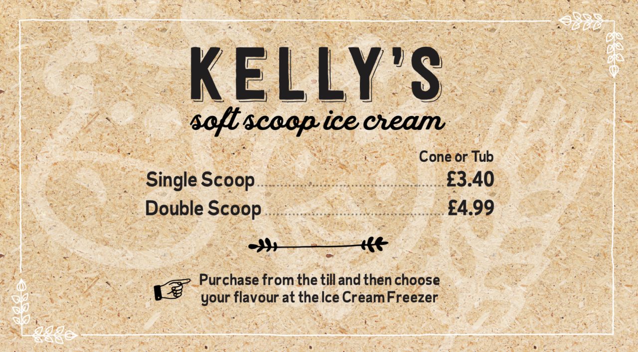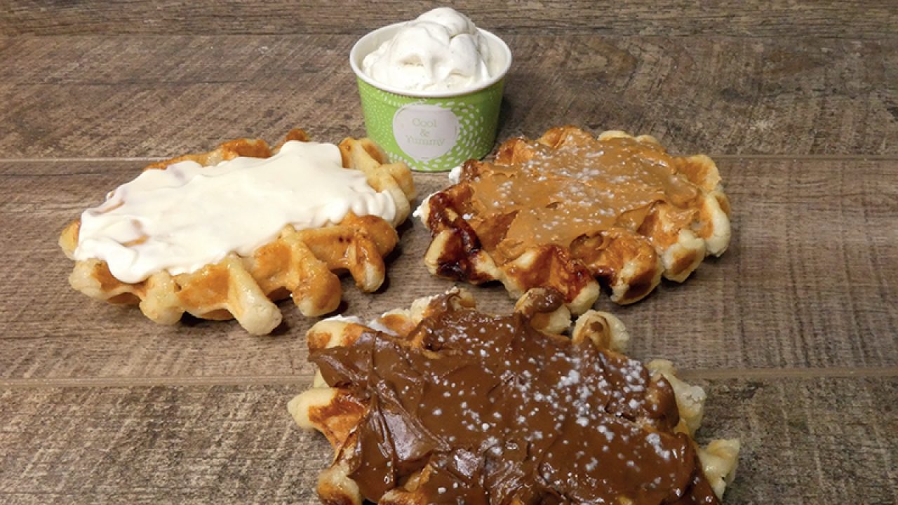 This outlet sells a variety of waffles, Kelly's soft scoop ice cream and drinks.