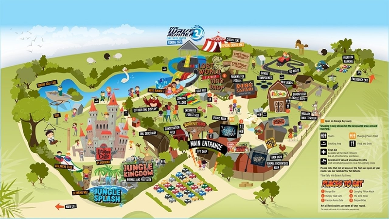 Heads up!Tickets can be purchased on the day at the entrance. There are online discounts when you pre-book 24 hours before arrival. The Lost World Playbarn requires you to wear (minimum) a sleeved t-shirt (no vest tops), knee length shorts and a pair of socks to ride the slides. Please read the 'What's Open' page for more details about what is available when you visit!